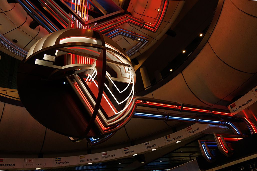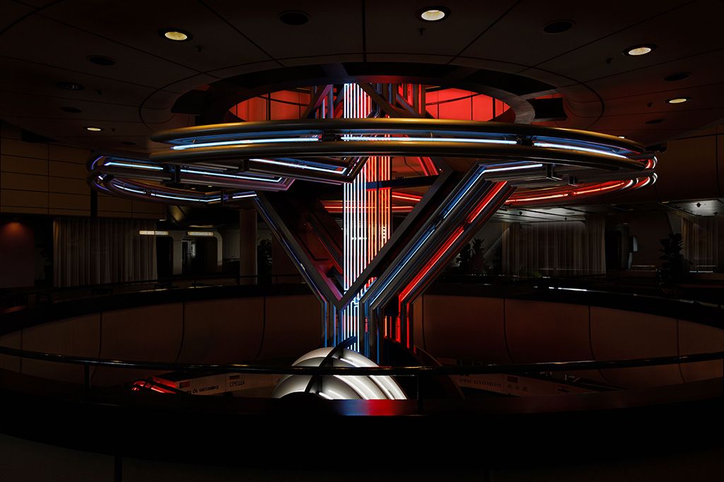 In 1979, when Berlin’s International Congress Center (ICC) opened its doors, a gray concrete wall still divided not only the city but the whole world into the two camps of the Cold War. The building’s architecture was a promise of a different future—one in which technology, devoted to the ultimate goal of elevating the human spirit, would let us reach our full potential. The ICC is a colossal machine, organized like a living organism with its own systems for air circulation, lighting, and a spherical “core.” People called this sphere “the brain,” a perfect form intended to supply vital energy to the entire structure.