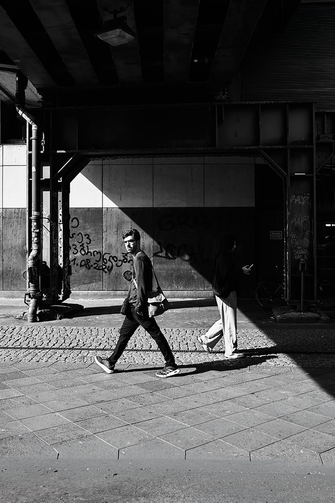 The street images of Berlin in 2025, the people caught walking relaxed and off guard, are more than documentary snapshots. They are fragments of the complex mosaic of a society with noise and pauses, the even rhythm of footsteps and spontaneous laughter, music and absolute silence. When the street is a stage and the protagonists have no names, what we seek are the invisible connections in the city’s vast social web. The grand promises of concrete, iron, and glass have fulfilled their purpose of uniting people around a vision and now serve merely as a backdrop absorbed into Berlin’s ever-changing experience.